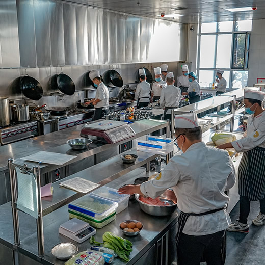 學(xué)校食堂因為要準備大量的食材,所以和一些酒店餐廳的后廚一樣,要使用不銹鋼的大型冰柜。由于用餐人數(shù)多,一般選用的是六門的冰柜,需要1~3個不等。通常冰柜也不能滿足學(xué)校食堂的需求,需要配合冷庫共同使用。